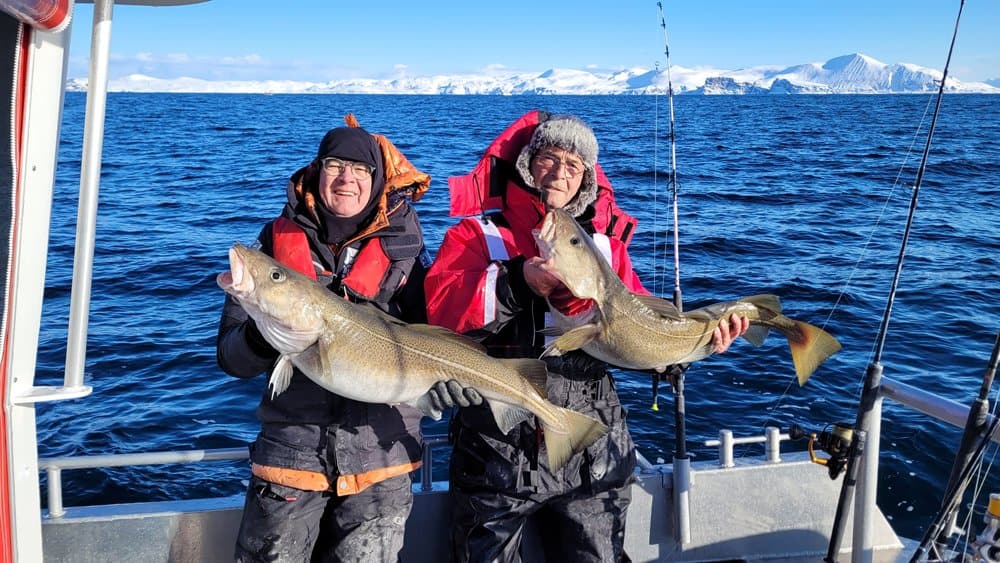 Bij Soroya ging ieder zijns weegs. Henk, Rein, Joost en Sjoerd hadden al snel een paar mooie scholen gevonden en binnen korte tijd stonden er meerdere hengels krom. Ettelijke skrei van rond de 1 meter werden uit het water getrokken en in enkele uren tijd hadden ze de bakken gevuld. Maar het bijzondere is: geen enkele 15+ kg vis, met de grootste voor Rein van 105 cm.