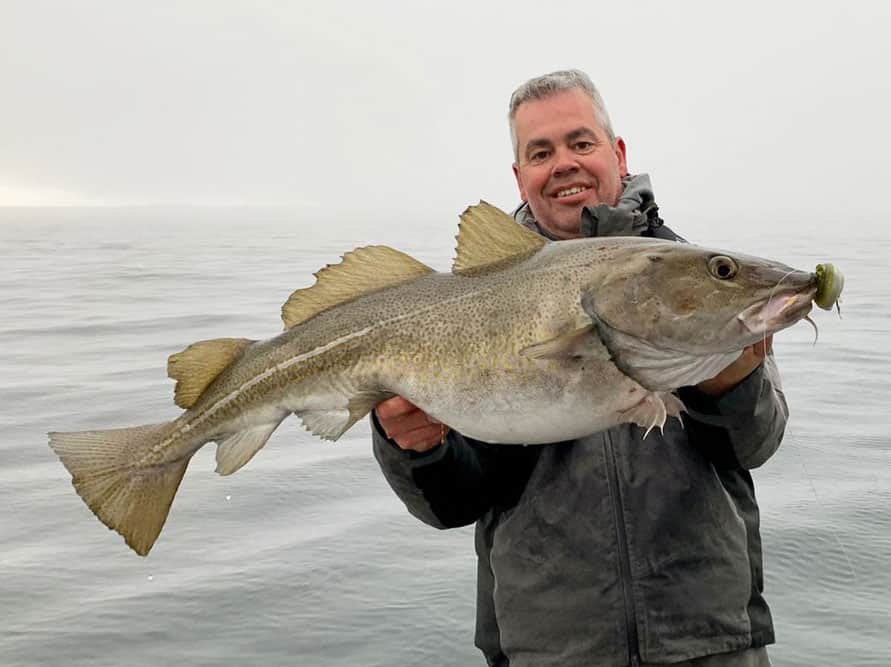 Het blijkt een echte goede keuze want het gaat van meet af aan prima als het gaat om het vangen van vis. Er worden een aantal schitterende kabeljauwen gevangen van 90+ centimeter, zelfs hikkend tegen de meter.