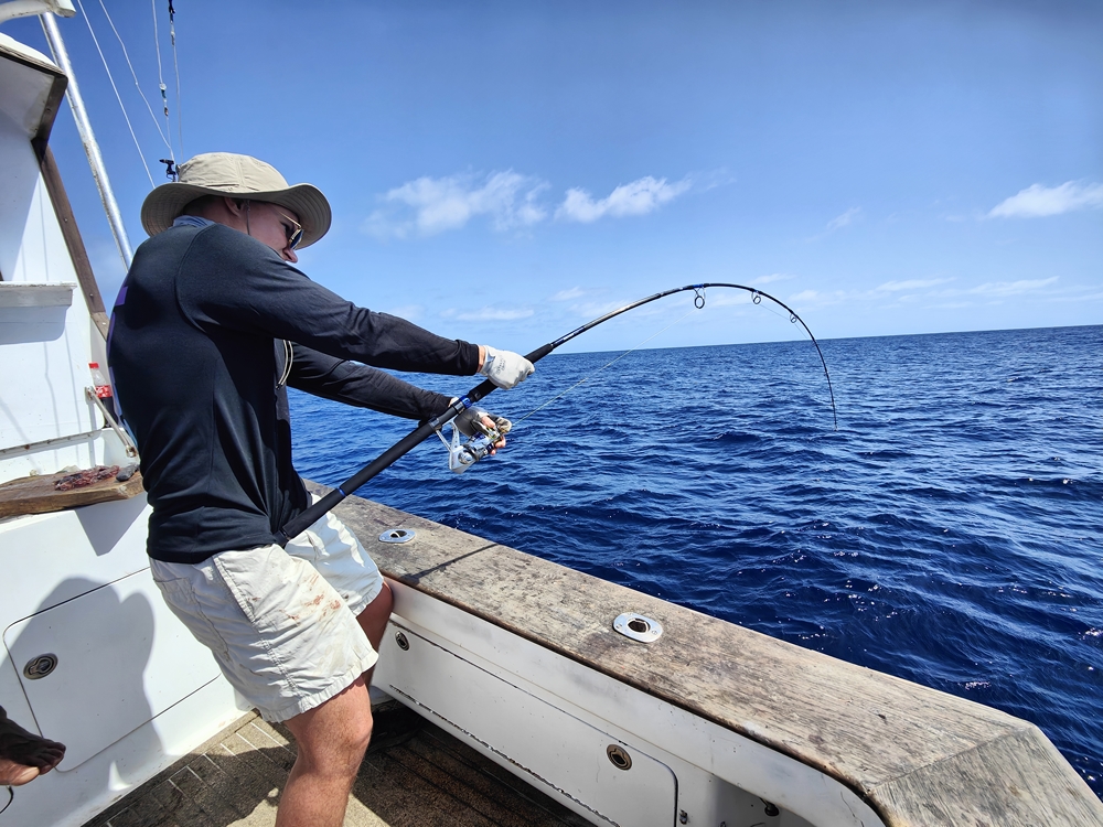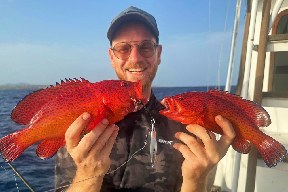 Om de tijd tussen de aanbeten te doden, gebruikten we ook lichte spinhengels. Met kleurrijk kunstaas vingen we talloze soorten vissen, van jacksoorten tot groupers. Elke dril was een feestje en het was een geweldige manier om de dag af te sluiten.