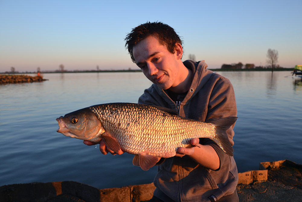PAUL DE WAL – Twijfelend staar ik naar het water. Dit vissen op winde moest wel de meest onlogische manier zijn, die ik ooit ging proberen. Met een sceptisch gevoel scheur ik een snee brood in stukjes en gooi het met moeite drie meter van de krib af. De hengel laat ik nog onopgetuigd op de stenen liggen, ik kon me niet voorstellen dat ik die vandaag nodig zou hebben. Terwijl ik de zak brood maar weer dichtknoop, hoor ik iets achter me. Het zal toch niet…? Vanuit mijn ooghoek zie ik nog net een klein kolkje verschijnen, tussen de inmiddels tegen de stenen aangedreven broodkorsten. Niet meer dan een paar seconden zijn er vervolgens nodig om mijn vertrouwen in deze visserij van 0 naar 100% te doen stijgen…