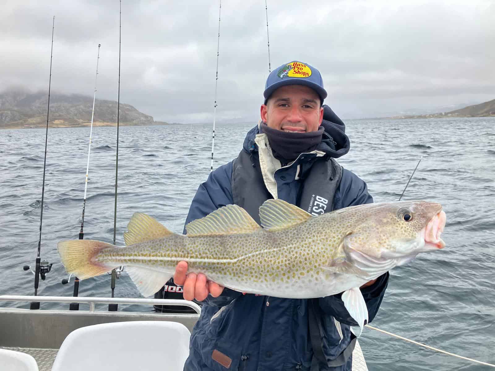 Van visgids Stale horen we dat de grote kabeljauw diep zit op dit moment en niet in de straumen en als het voor het vissen op heilbot dan eigenlijk te hard stroomt, weet je eigenlijk wel genoeg. Toch heeft iedereen berusting en proberen we het maximale eruit te halen wat erin zit. Gelukkig lukt het toch om hier en daar wat vis te vangen en dat resulteert in een paar mooie kabeljauwtjes, wat koolvis en ja, een heilbot voor Ruud.