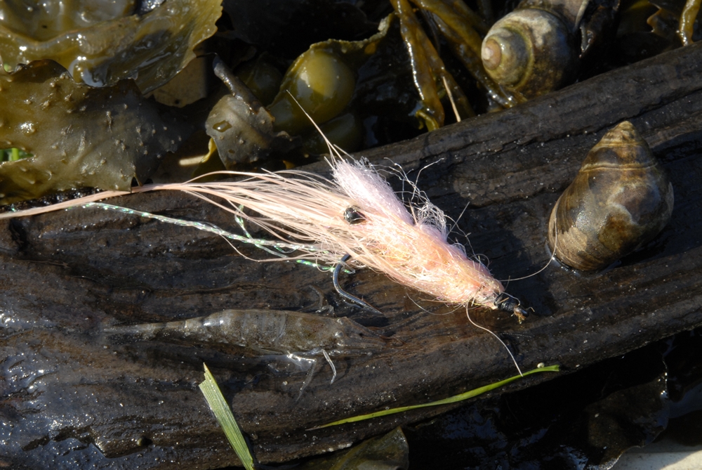 Ervaren vliegvissers én spinvissers met de bombarda op zeeforel hebben vaak dozen vol met imitaties van garnalen. Patronen zoals de pattegrisen (het biggetje) en de glitter shrimp zijn populair, effectief en prima te vissen met de vliegenhengel en een bombarda-montage.