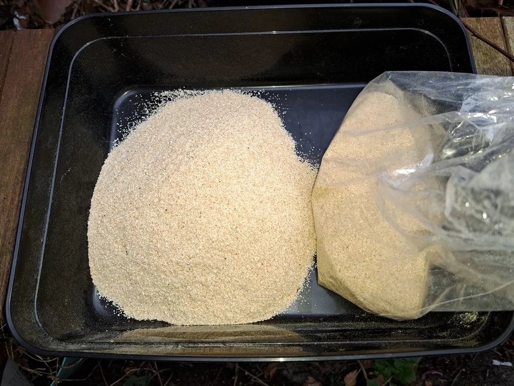 - Voorbereiden van het zaagsel: Bevochtig het fijne zaagsel lichtjes om uitdroging van de maden te voorkomen.